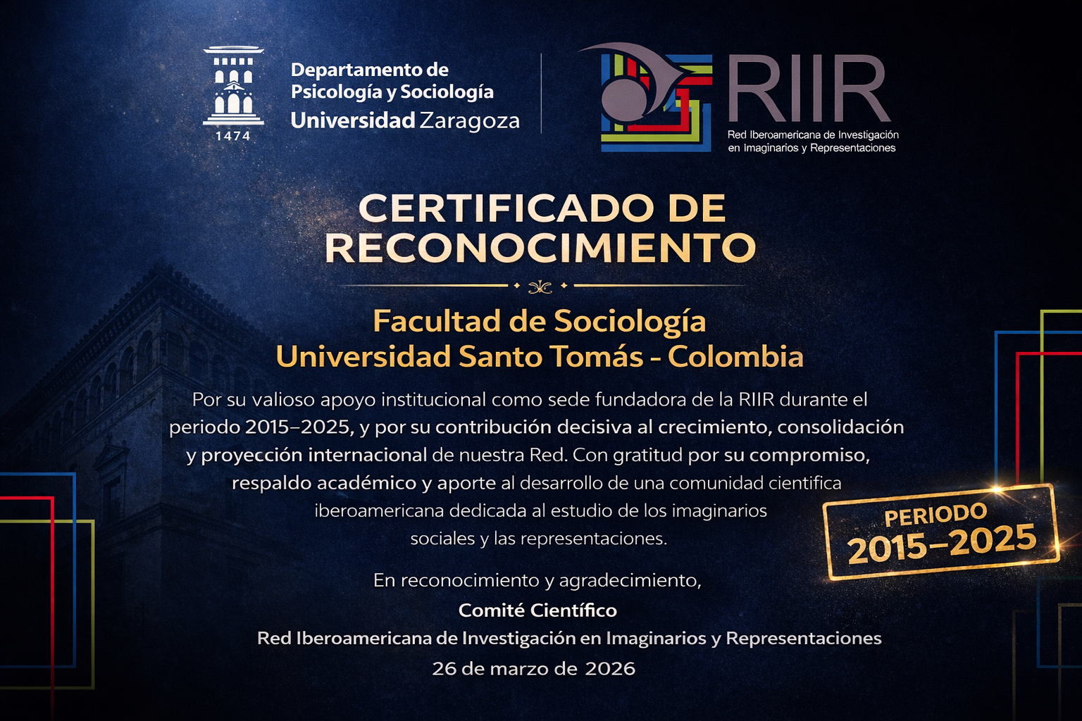 La Red Iberoamericana de Investigación en Imaginarios y Representaciones (RIIR) tiene el agrado de informar a su comunidad académica internacional que el Departamento de Psicología y Sociología de la Universidad de Zaragoza (España) ha aprobado, en sesión extraordinaria de su Consejo de Departamento del 25 de marzo de 2026, la concesión del aval institucional a la RIIR, otorgando así reconocimiento formal y adscripción académica a nuestra red (CARTA DE AVAL)