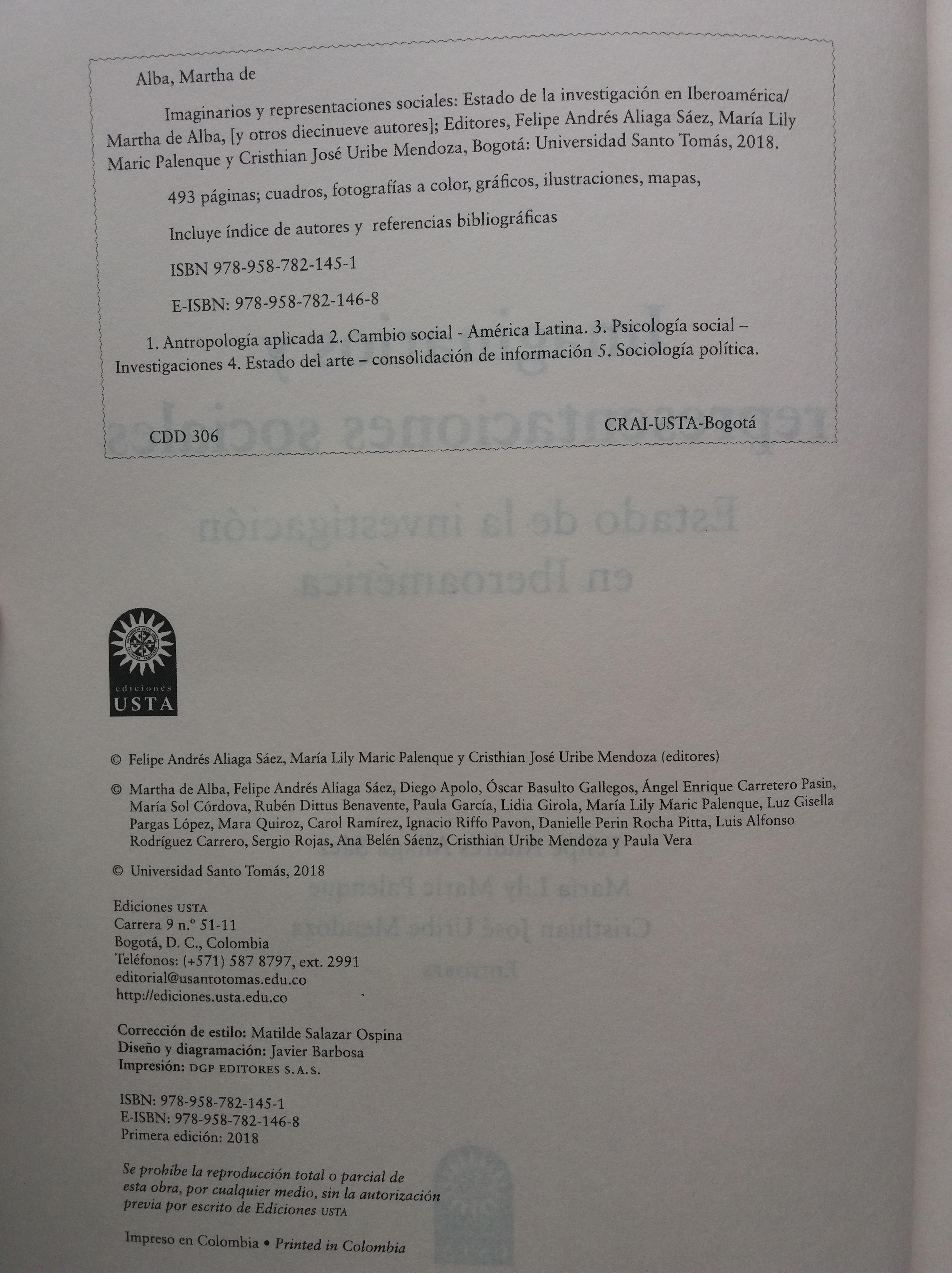 Publicado el en 3088 × 4128 en Lanzamiento del libro: Aliaga, F., Maric, M., Uribe, C. (Eds.). (2018). Estado de la investigación en Iberoamérica en torno a los imaginarios y las representaciones sociales. Bogotá, Colombia: Ediciones USTA.