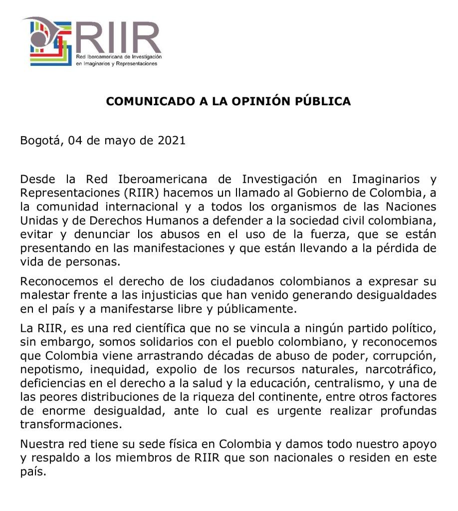 ← Diplomado Internacional en Investigación Aplicada a Imaginarios Sociales. 2021 Imaginación o barbarie. Llamado a textos nº24 Edición Especial: S.O.S. Colombia →