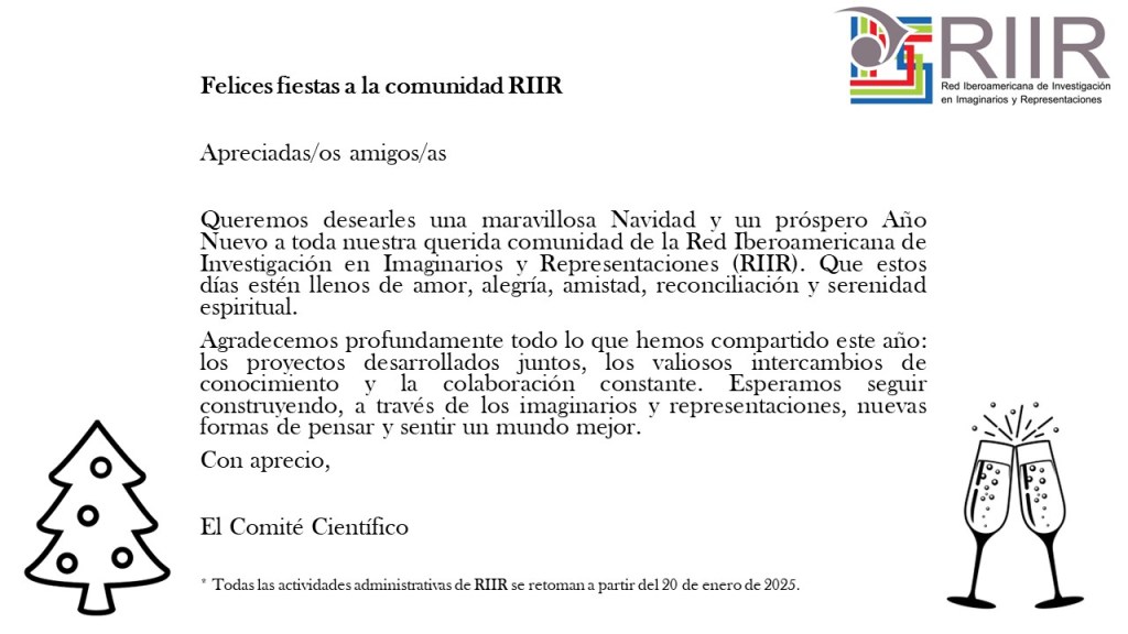 Por medio de aprobación unánime del comité científico de la Red Iberoamericana de Investigación en Imaginarios y Representaciones (RIIR) se ha designado a partir del 17 de enero de 2025 como nuevo secretario ejecutivo de la red al colega Luis Javier Cintrón Gutiérrez, docente de la Universidad del Sagrado Corazón de Puerto Rico, quien también pasa a ser representante del Caribe en el Comité Científico.