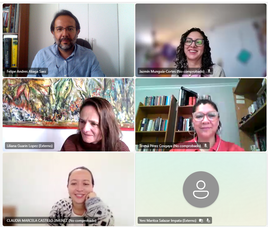Las y los miembros de RIIR: Teresa Pérez Cosgaya, Enrique Gómez Rodríguez, Claudia Marcela Castillo, Jazmín A. Mungía Cortés y Felipe Aliaga Sáez, participaron en el en la mesa de expertas y expertos en representaciones sociales e imaginarios para la prevención de las violencias, organizado por el equipo de Convivencia Social y Ciudadanía de la Dirección de Promoción y Prevención del Ministerio de Salud de Colombia.