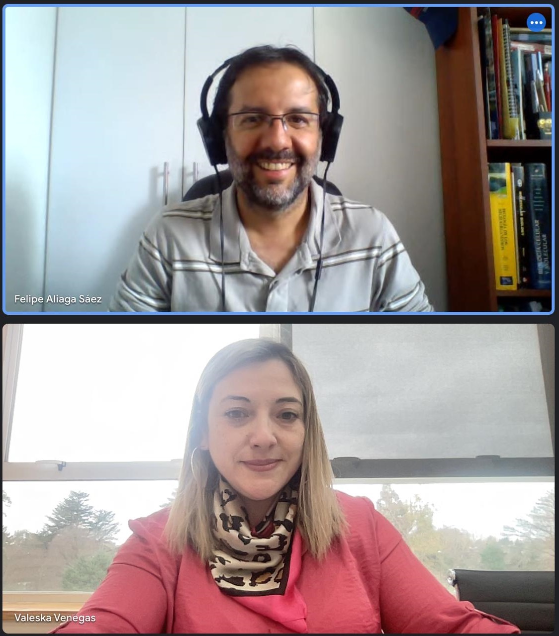 El día lunes 8 de julio del presente año se reunieron Valeska Venegas, quien tiene el cargo de coordinadora de Grupos de Trabajo y Felipe Aliaga, coordinador general de RIIR, para hacer un balance de los planes de acción de los diferentes Grupos de Trabajo de la Red Iberoamericana de Investigación en Imaginarios y Representaciones (RIIR).