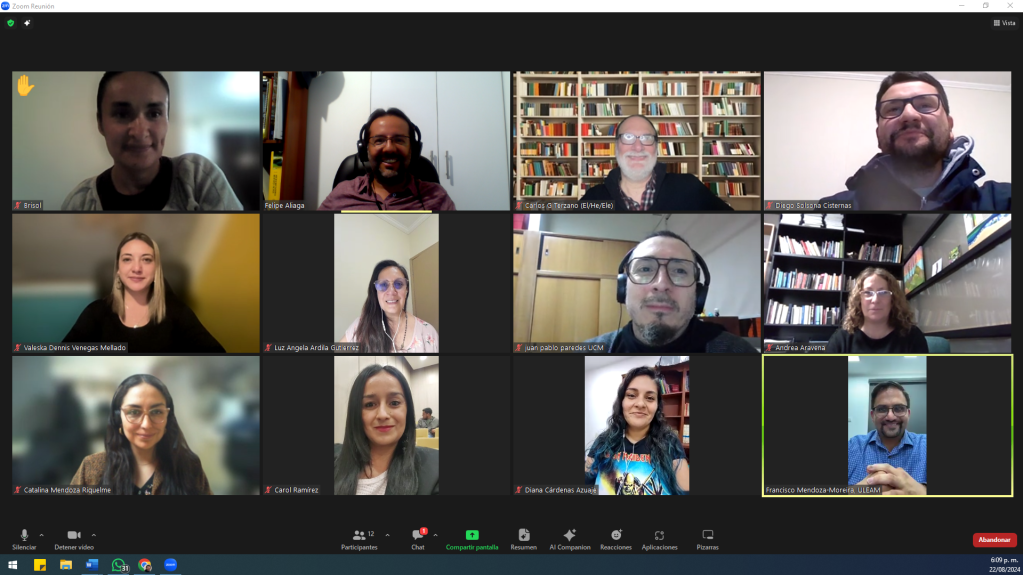 Con la participación de colegas representantes de universidades de México, Colombia, Ecuador, Chile, Argentina y Brasil, se desarrolló la primera reunión del comité científico del V Workshop Internacional Investigación en Imaginarios y Representaciones, que se desarrollará del 22 al 25 de abril de 2025 en la Universidad Laica Eloy Alfaro de Manabí (ULEAM), Manta, Ecuador.