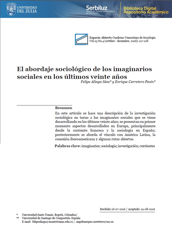 Artículo publicado en la revista “Espacio Abierto. Cuaderno Venezolano de Sociología” Vol. 25, 4. Octubre-Diciembre de 2016. Escrito por Felipe Aliaga y Enrique Carretero.