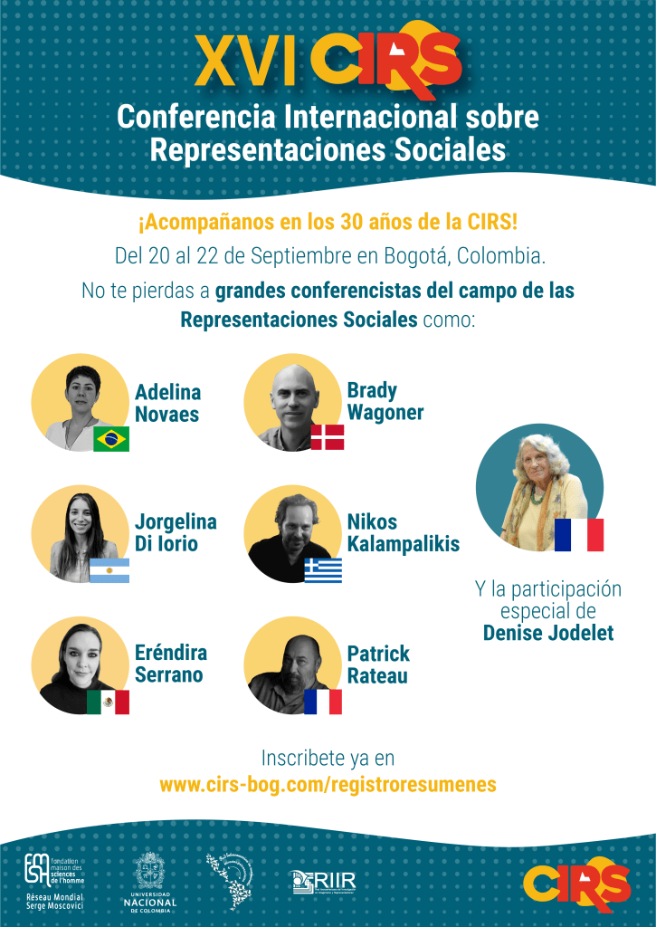 La Red Iberoamericana de Investigación en Imaginarios y Representaciones (RIIR) respalda la XVI Conferencia Internacional sobre Representaciones Sociales (CIRS), Bogotá del 20 al 22 de septiembre.